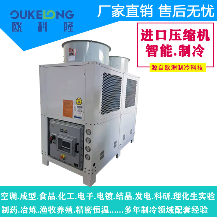 歐科隆20匹低溫防爆冷水機以安全、穩定、高效為核心,適用于各類防爆環境,并提供定制化服務,滿足不同工業需求。