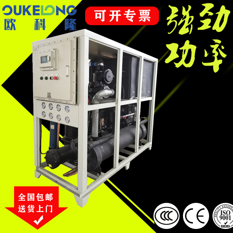 歐科隆水冷箱式防爆冷水機是歐科隆制冷打開市場的拳頭產品,采用隔爆、增安、本安、正壓、充油、充砂、無火花、澆封和氣密等多種防爆方式,使機組可以在易燃易爆場合使用。