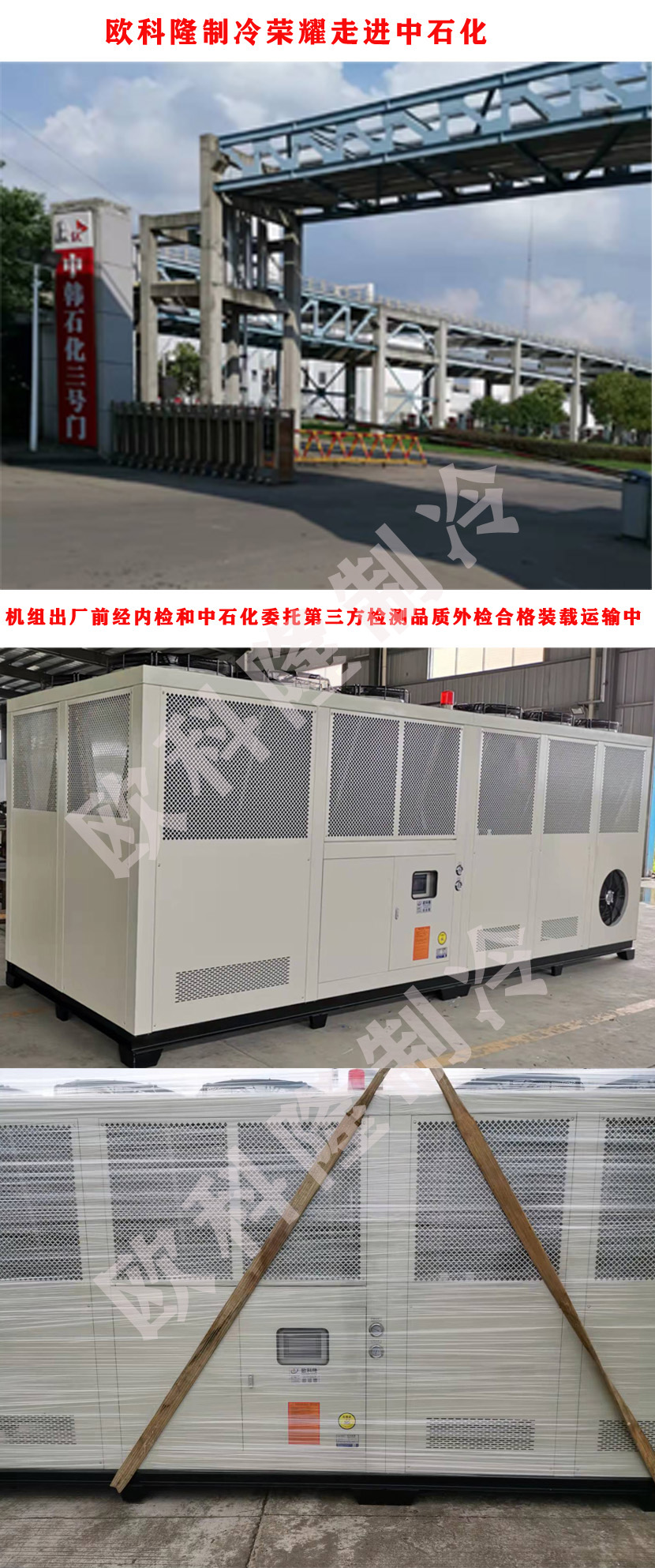 產品說明:歐科隆制冷系列冷水機組產品榮耀走進中石化,為中石化聚乙烯系類產品的生產保駕護航。