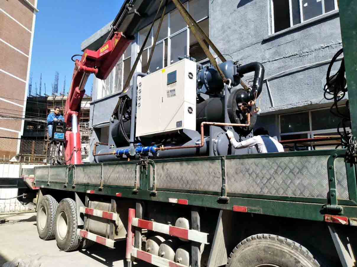 雙壓縮機雙制冷系統(tǒng)中央空調螺桿機裝載中